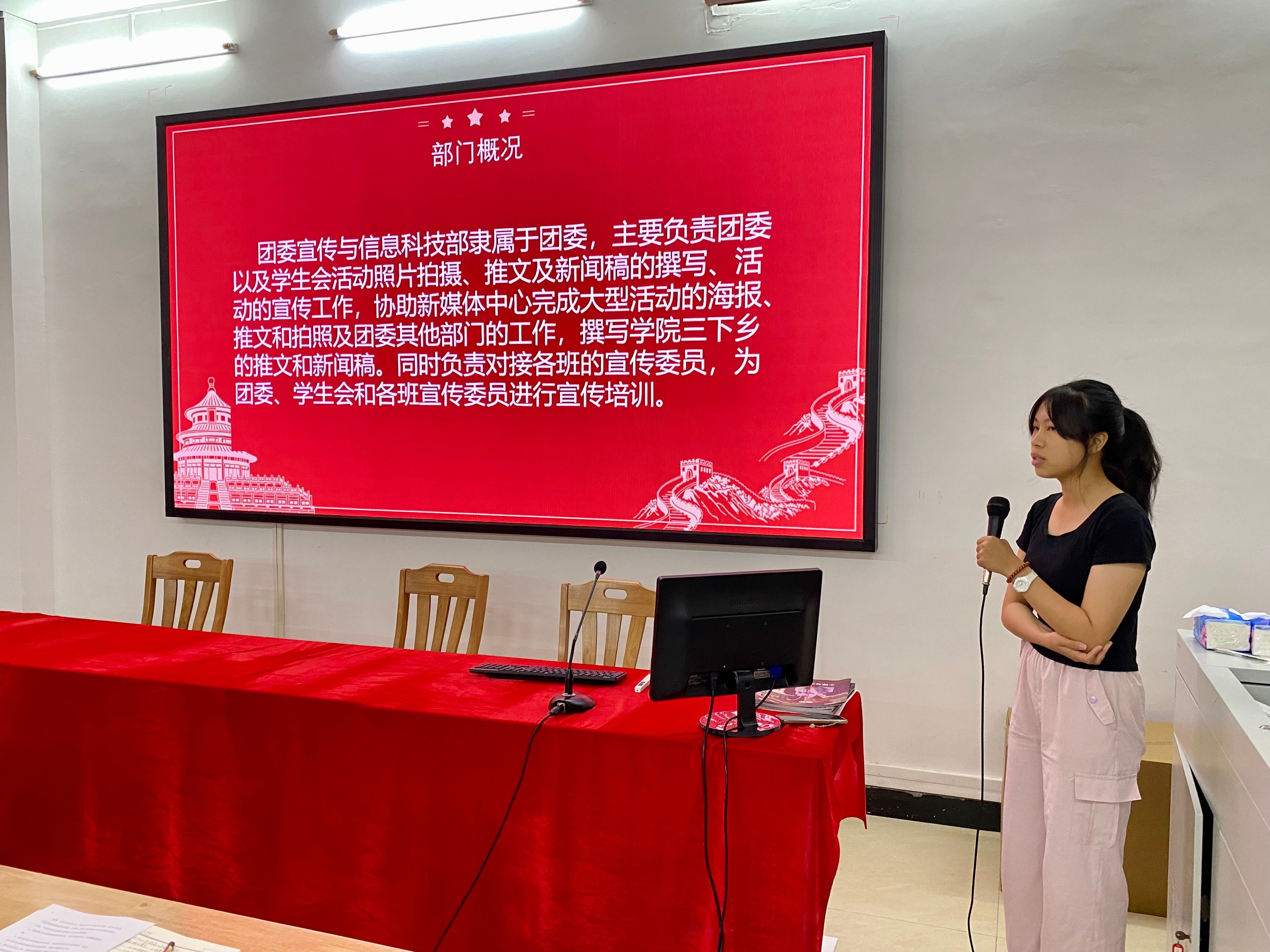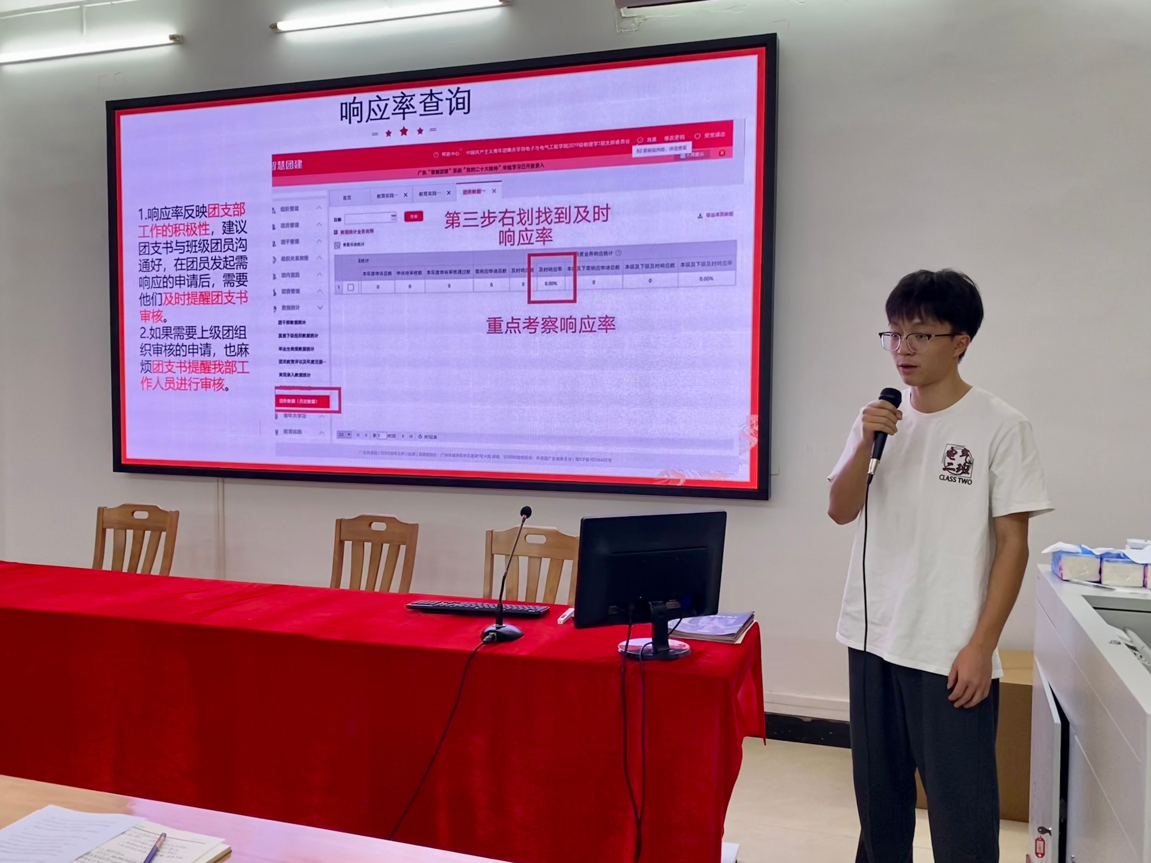 会上,学院团委相关职能部门负责人介绍了各部门职能,并详细讲解了团日活动、智慧团建系统、青年大学习与日常管理四项团支书基础工作,通过介绍相关团日活动的实例加深了大家对团日活动的理解,从登录系统、信息录入、评议激励三个方面详细的介绍了智慧团建系统的使用方法,为相关信息录入提供了具体指导。会议明确了团支书所需担负的职责任务,包括组织协调、青年大学习、管理监督、宣传思想等多项工作。