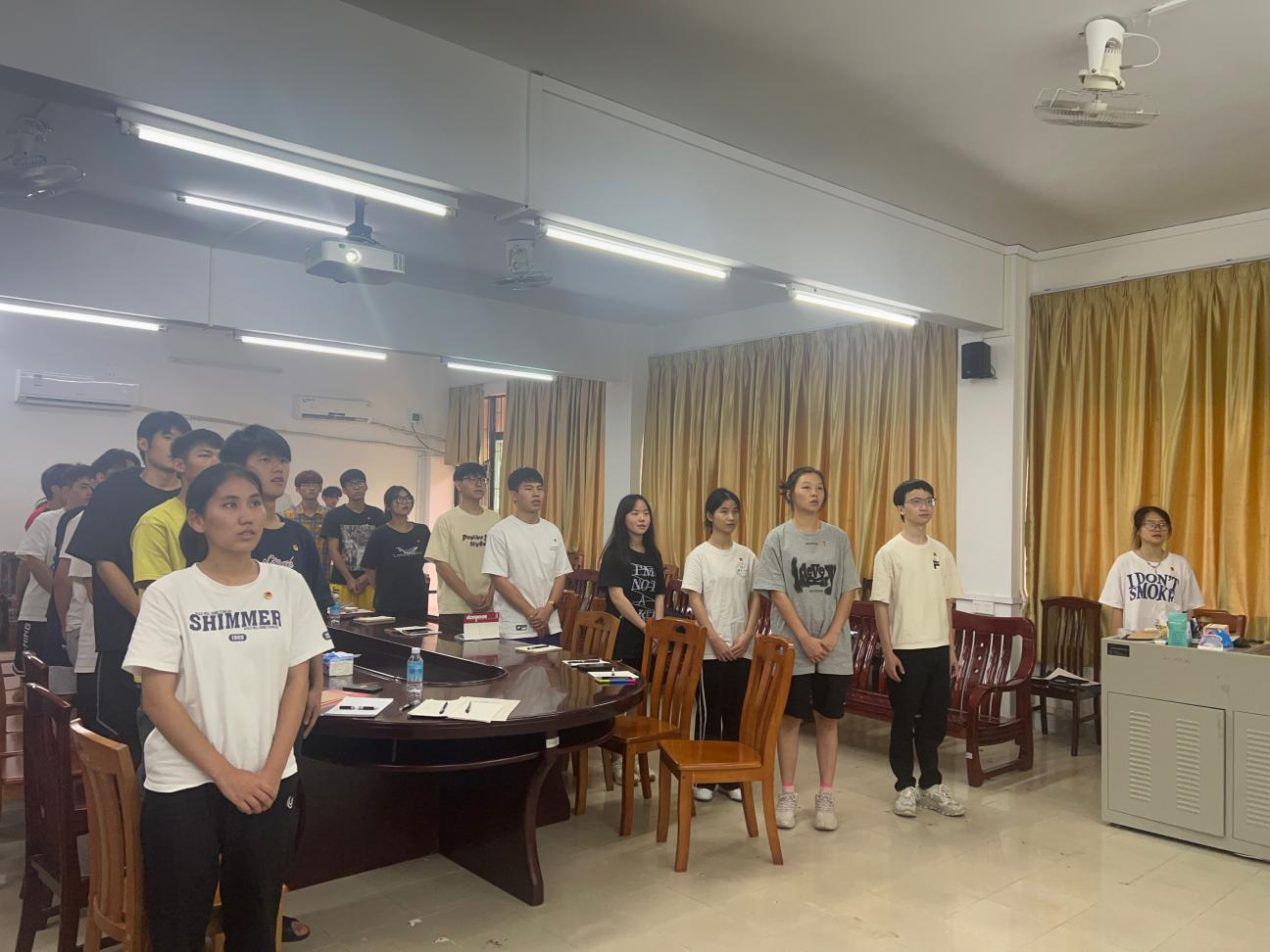 本次团课最后以全体成员起立奏唱团歌结束。