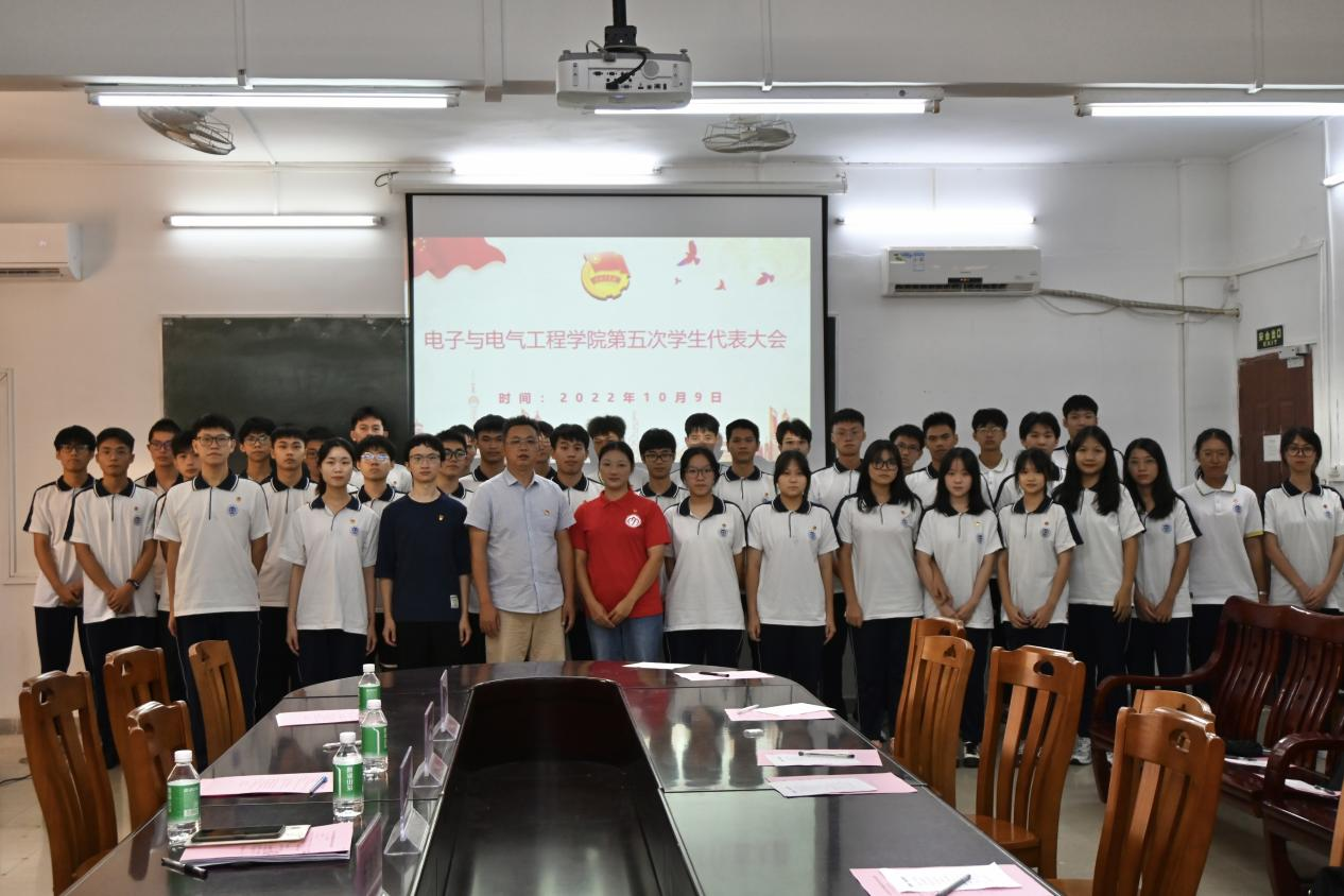 本网讯:10月9日中午,我院在实验大楼208会议室举行第五次学生代表大会。参加此次大会的领导和嘉宾有学院党委副书记傅汉球、院团委书记邱景鸿、校学生会学生代表张涵、院学生会学生代表以及各班代表共50多人。