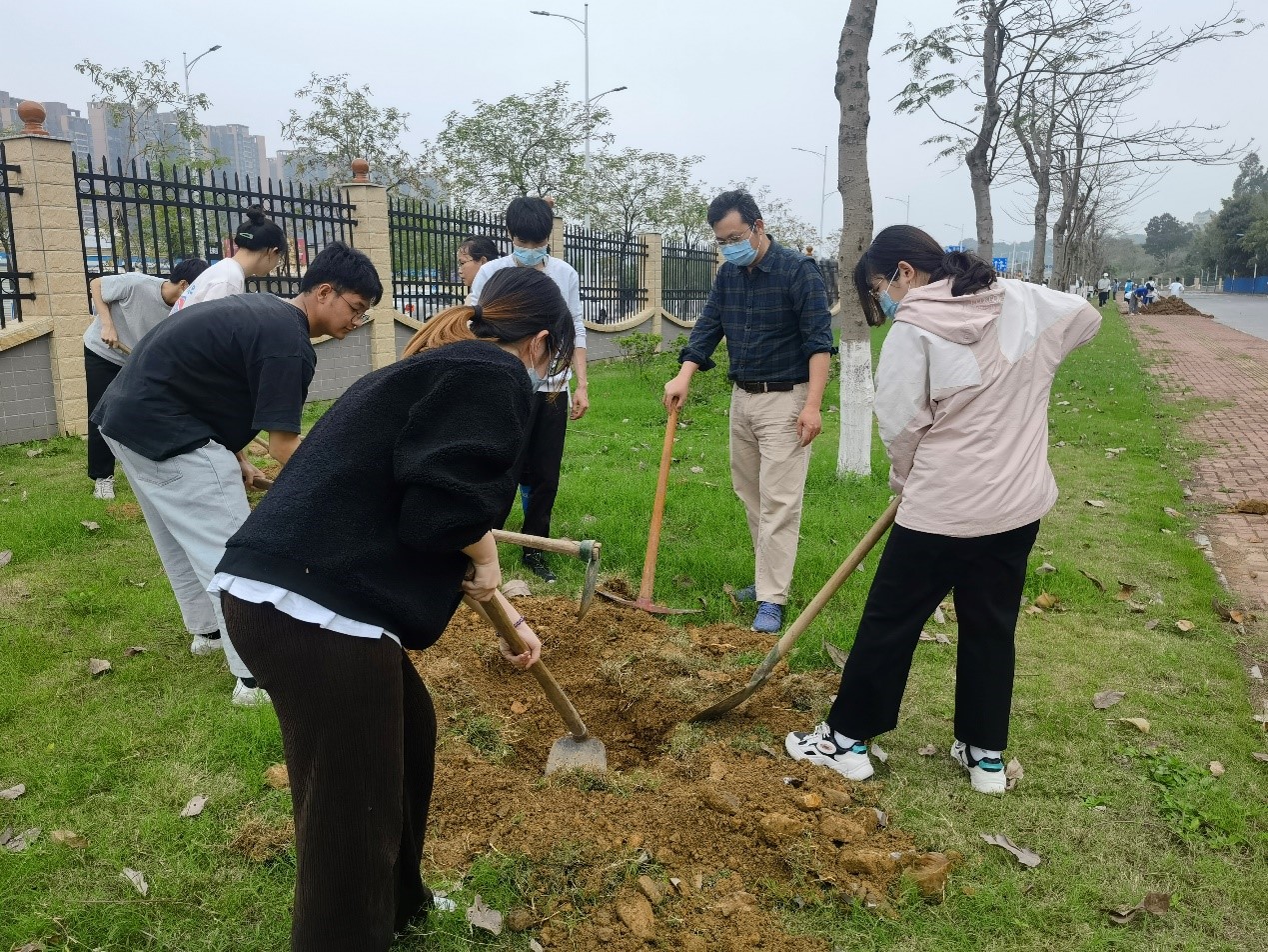 据悉,我院师生挥锄掘土,植树育苗。共计植树25株,其品种有红花玉兰、本地樟树和黄花风铃木等。