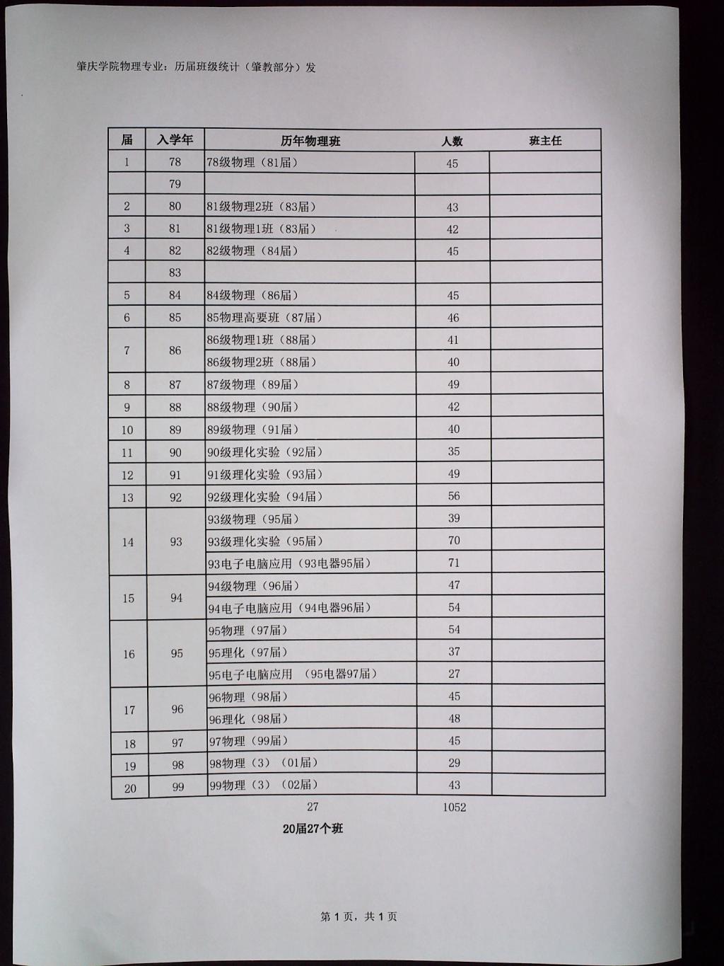 物理及物理教育等专业的班级统计如下(肇庆教育学院部分,发校友群),如有错漏,请提出修改,谢谢。