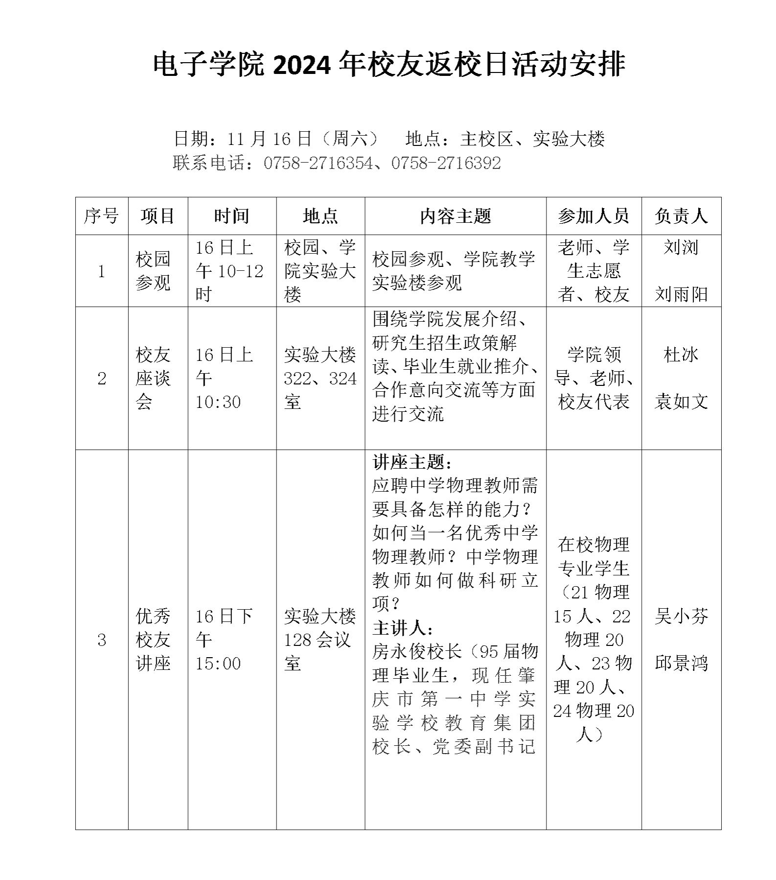 活动内容:1.校园及学院成果参观;2.校友代表座谈会;3.优秀校友讲座报告会。(详细见下表)