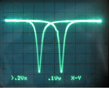 示波器观察YIG多晶样品共振信号 示波器观察单个YIG多晶样品共振信号