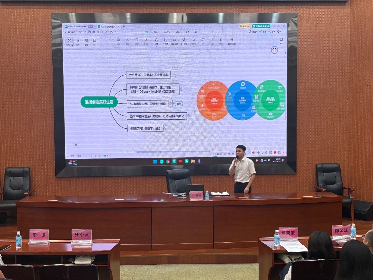 讲座中,李鹰、孔瑞轩两位资深专家带来专业分享。李鹰工程师从日常手机通话、上网等通信常识切入,解读中国移动服务承诺与网络运维技术;孔瑞轩工程师聚焦肇庆本地,介绍移动网络覆盖、核心设备情况,并结合案例阐释通信技术在 “智慧肇庆” 建设中的应用,让新生直观感受通信技术的实用价值。